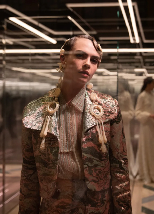 De la mano de su director creativo, el norteamericano Daniel Roseberry, pudimos disfrutar de una colección llena de guiños al movimiento surrealista, desde grandes volúmenes a nivel de mangas y joyas XXL.