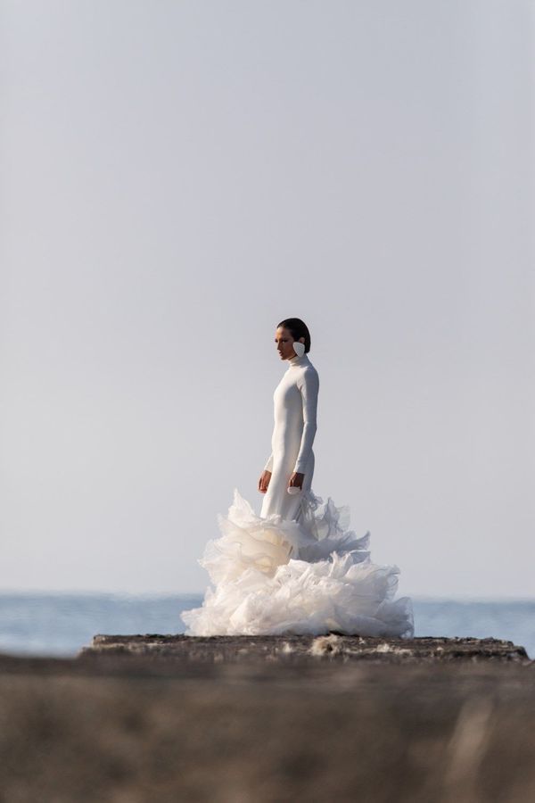 Uno de mis diseñadores favoritos es Stéphane Rolland. Siempre está en la búsqueda de la fusión perfecta entre arte y moda. Sus creaciones de volúmenes XL han cautivado a princesas y grandes estrellas como Celine Dion o se han visto en series como Emily in Paris, en la que su vestido blanco fungió de protagonista.