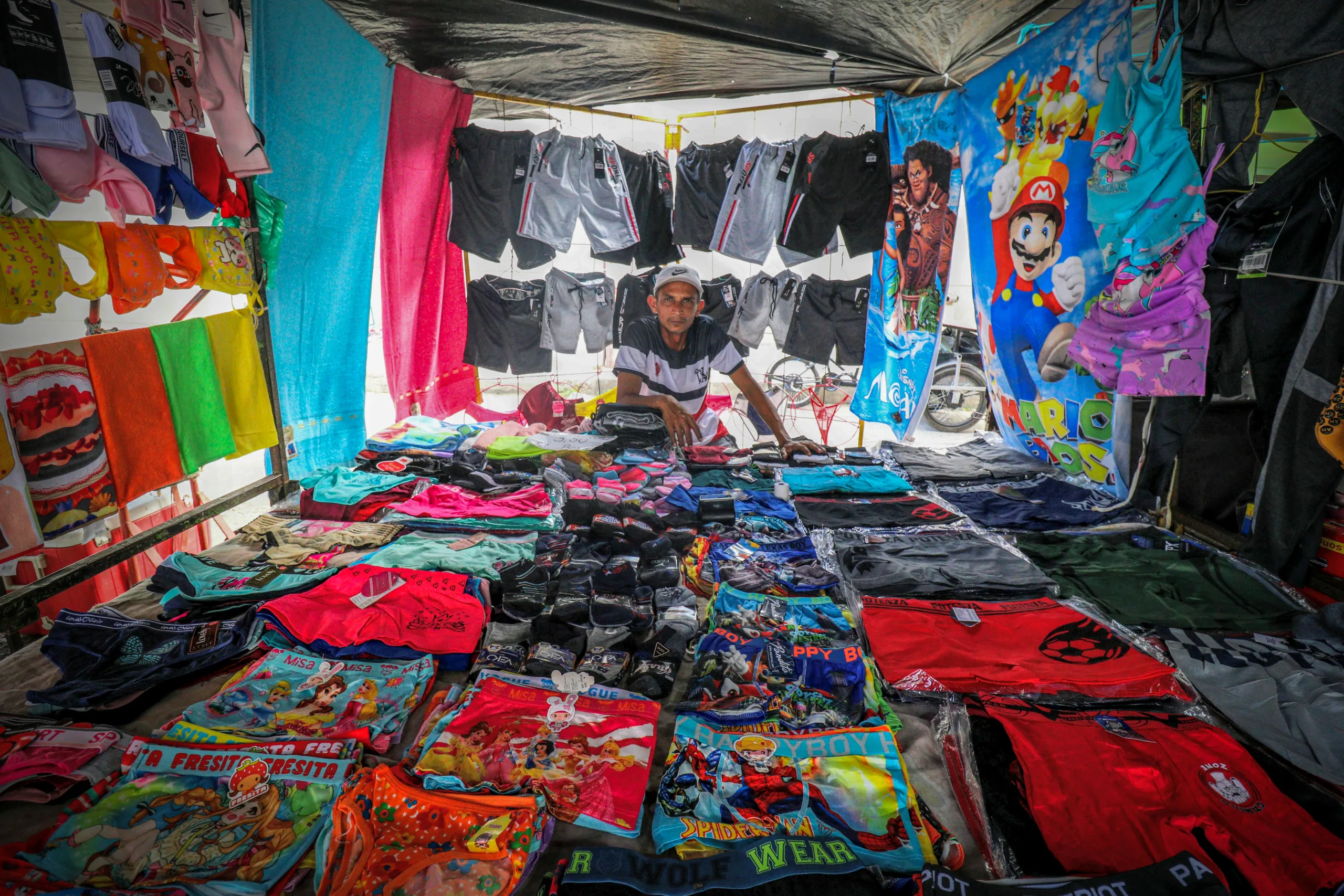 Las piezas y tacos de tuercas y tornillos hacen un ritmo visual para los que intentan ver otra cosa, es un mercado para todosOtros venden ropa nueva