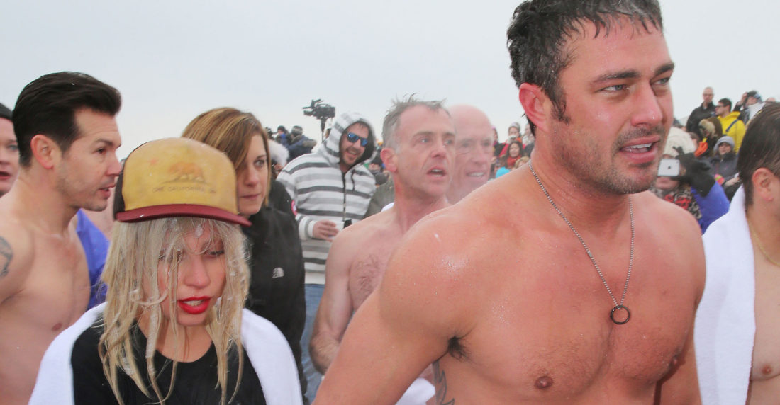 Vince Vaughn fue el invitado de honor del Chicago Polar Plunge, pero otras celebridades se sumergieron en las heladas aguas del lago Michigan. Entre ellas Lady Gaga quien entró al agua sobre los hombros de su novio y comprometido Taylor Kinney.