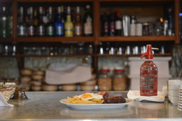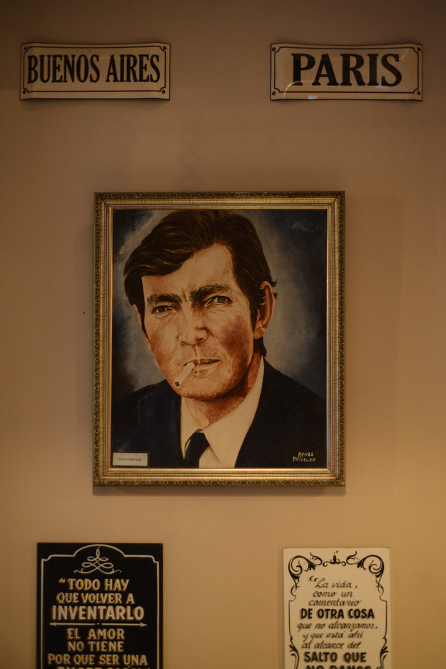 Los ojos claros y las cejas tupidas del autor argentino reciben, desde una imagen ubicada sobre la puerta principal del bar, a los comensales que se acercan para pasar un rato entre objetos e iconos que recuerdan todo el tiempo a uno de los escritores más reconocidos del país austral.