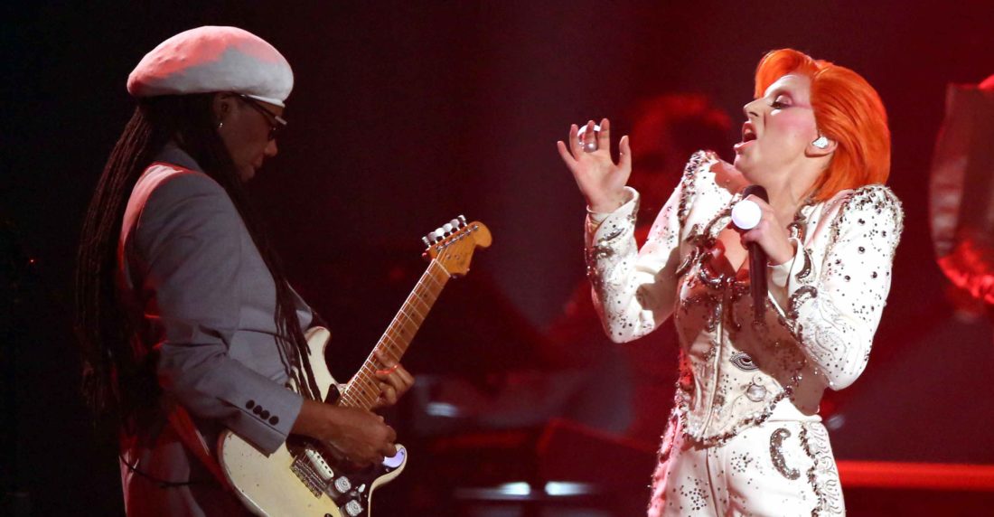 Gaga interpretó un extenso homenaje a Bowie en el Staples Center en Los Angeles el lunes, con un estilo inspirado en Ziggy Stardust y una decena de éxitos del británico que incluyeron «Space Oddity», «Let’s Dance», «Changes» y «Heroes».