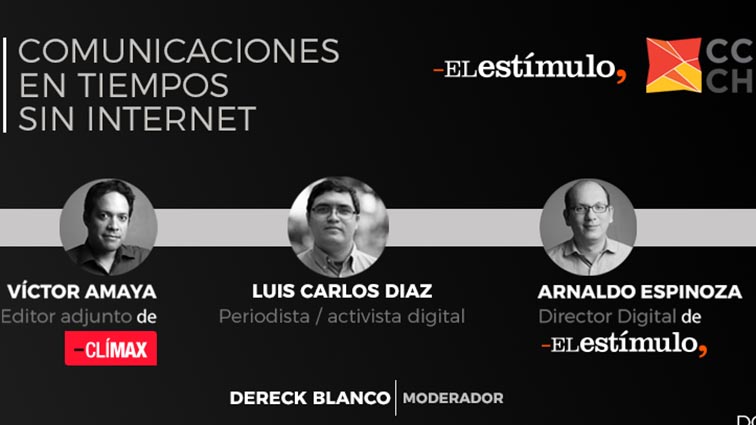 Arnaldo Espinoza, Director Digital de El Estímulo, Víctor Amaya, editor adjunto de Clímax y Luis Carlos Díaz, periodista y activista digital, estarán desarrollando el foro Comunicaciones en tiempos sin Internet.