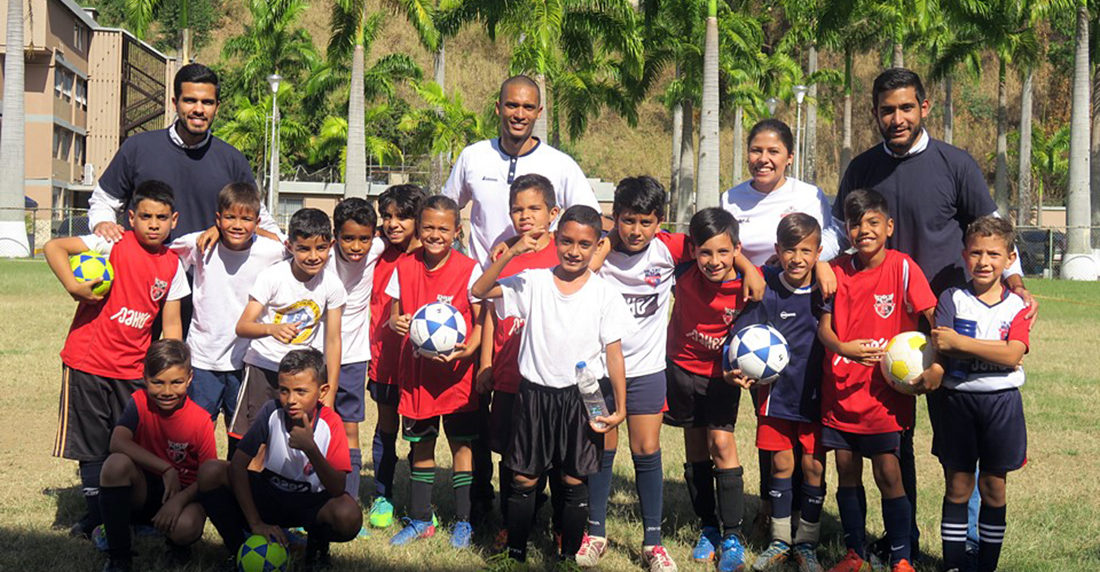 Alex Useche, coordinador de la Fundación, hizo entrega de balones a la escuela, como parte del incentivo inicial.