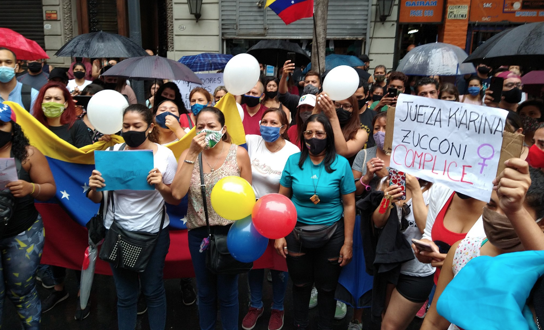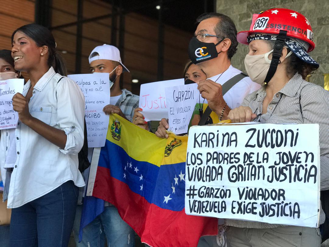 Frente a la sede de la Embajada de Argentina en Caracas, en el complejo de oficinas del Centro San Ignacio, un grupo de personas se concentró para protestar contra la decisión de la jueza argentina y sobre la comprobada violación de Irineo Garzón a una adolescente venezolana que debió buscar trabajo para ayudar a su familia.
