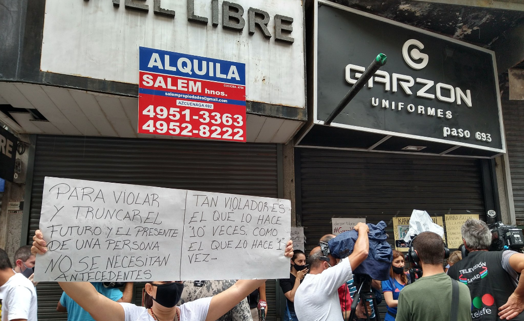 Un nutrido grupo de personas protestó hoy en Buenos Aires, contra la decisión que dejó libre al violador capturado en flagrancia.