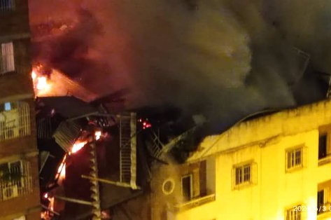 Parte de la estructura del edificio Nazaret, ubicado en la avenida principal de Maripérez (Caracas), colapsó esta mañana como consecuencia de un incendio.