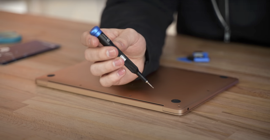 Esta es la parte más delicada de la operación, pues Apple no pone la cosa muy fácil a la hora de intervenir o reparar sus dispositivos. La principal dificultad es hallar un destornillador con la punta que usa la empresa para sus tornillos, pues no es el clásico tornillo de estrías (Philips 1) que uno puede conseguir en todas partes. Sn embargo, hay kits de herramientas que incluyen puntas de destornillador para este tipo de tornillo (P5) y se pueden conseguir en una gran variedad de precios.