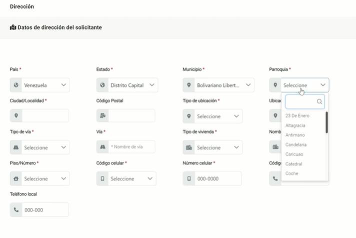 El usuario deberá registrar la información de residencia, que se conforma por país, estado, municipio, localidad, código postal, teléfono, entre otros.