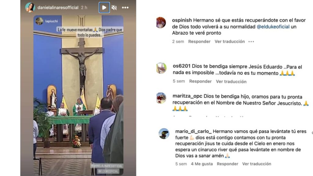 Del mismo modo, su esposa, Daniela Linares, ha compartido mensajes con un tono parecido y le hace mención: «La fe mueve montañas. Dios padre que todo lo puedes».
