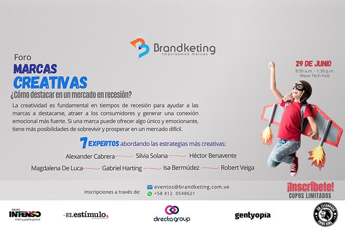 Para mayor información e inscripciones pueden contactar con Brandketing Consulting (quienes organizan este foro) a través de su WhatsApp Corporativo 0412 054.8621 o por el correo electrónico: tumarca@brandketing.consulting o info@brandketing.com.ve