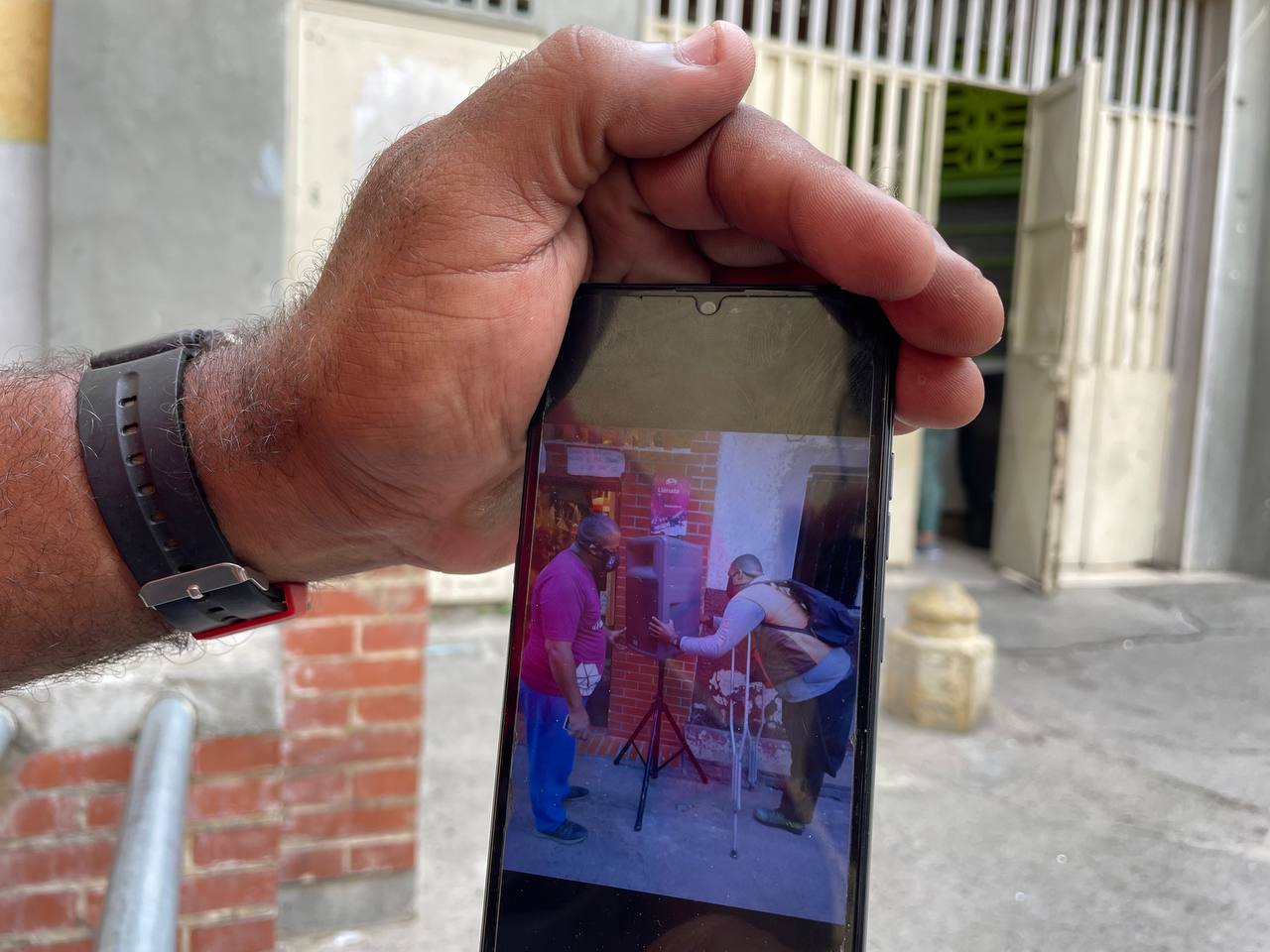 Mostrando esta foto Roberto cuenta que durante dos años y medio fue reportero comunitario del medio de comunicación venezolano El Bus TV. Narraba las noticias a sus vecinos junto a Joel Barreto. Actualmente, los dos hicieron una alianza para recrear a niños y jóvenes de su comunidad. Foto: María José Dugarte.