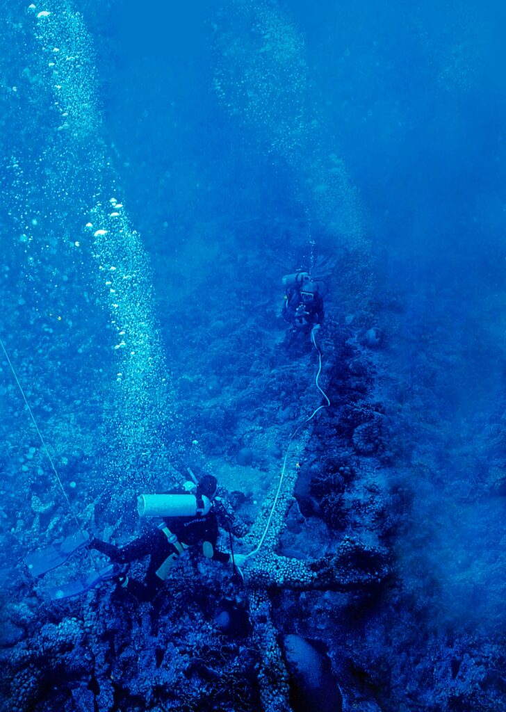 A lo largo de las dos décadas que abarca el estudio, el profesor Pérez-Gómez tuvo la oportunidad de llevar a cabo distintas jornadas de buceo en el lugar del naufragio. En el proceso, se pudo constatar la cantidad de barcos hundidos a partir del conteo y localización de los “balastros”, que eran piedras colocadas en el fondo de los navíos para servir de contrapeso y de estabilizadores durante la navegación.