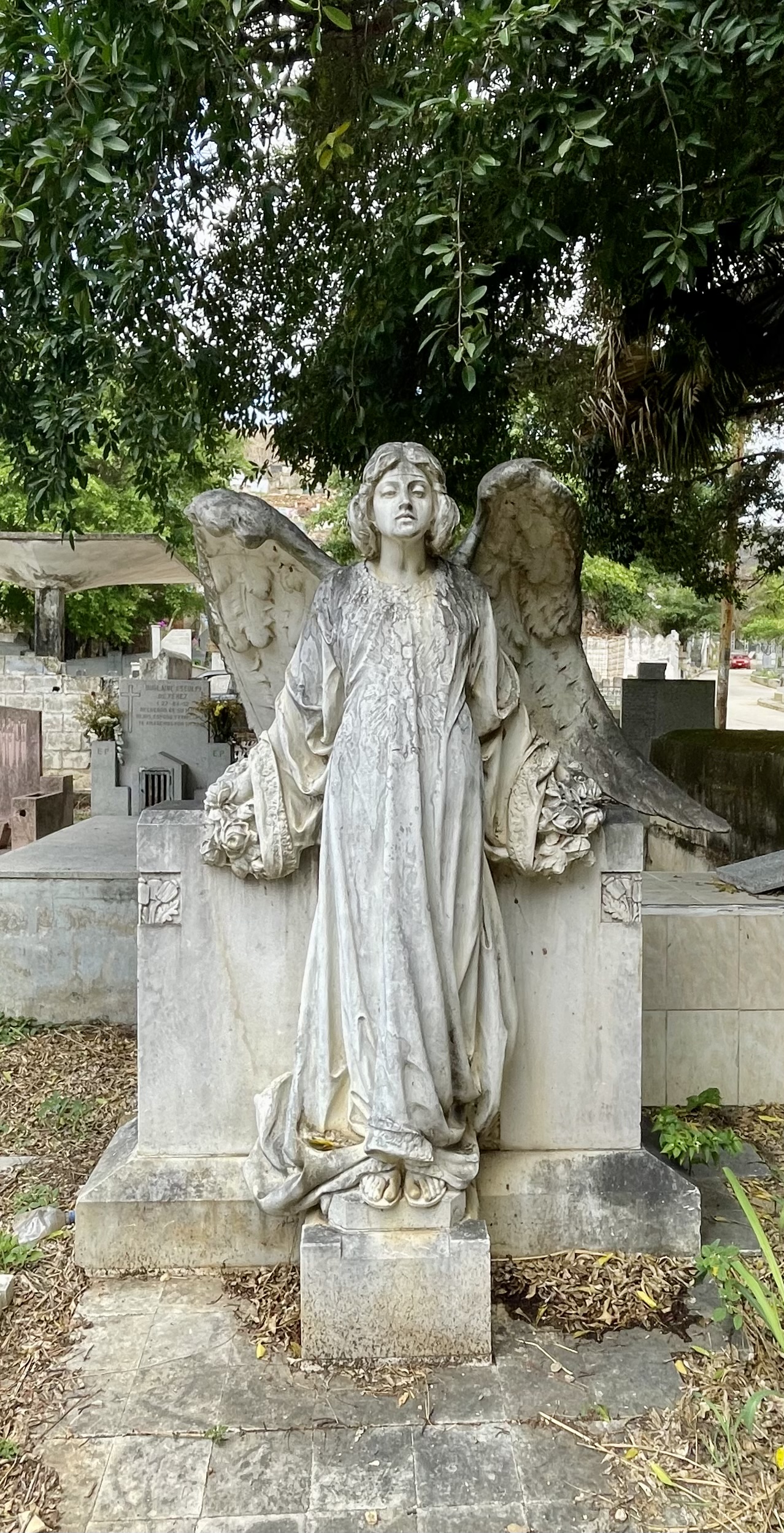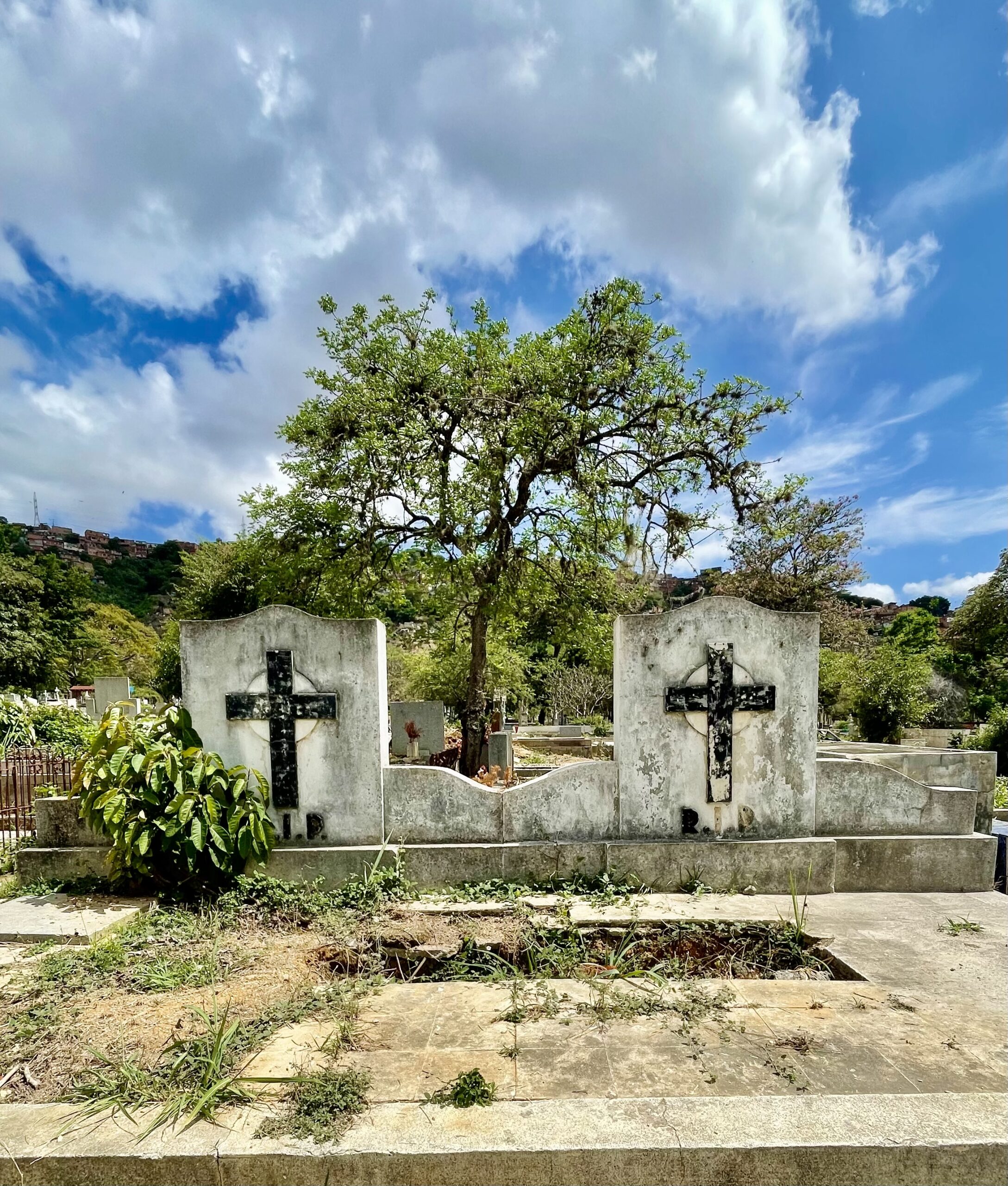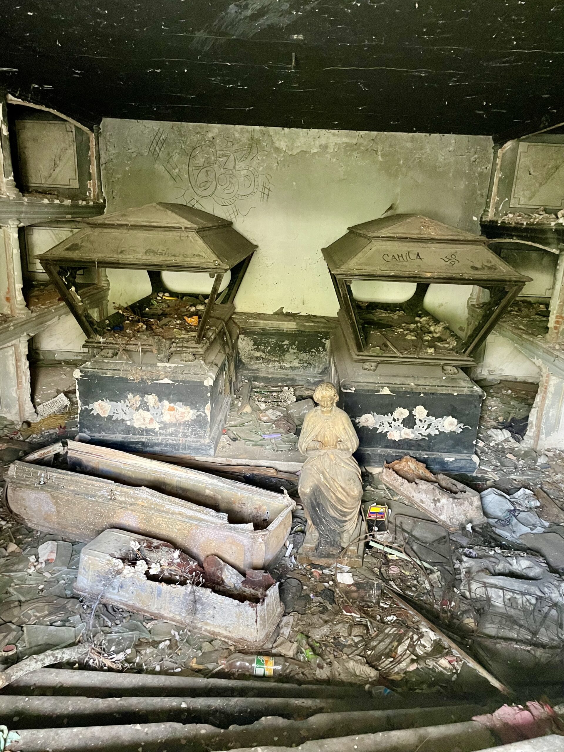 Caminamos sin rumbo determinado, tomando fotos, admirando muchas esculturas y lamentando las que están destrozadas. Pudimos ver que muchos de los panteones violentados tenían escrito a mano «ya fue profanado». Estremece encontrar estatuas de figuras femeninas y de niños a los que les faltaba la cabeza. ¿Acaso brujería? Me dio dolor ver la lápida de la tumba del poeta Juan Antonio Pérez Bonalde partida en dos. Ya no queda nada de bronce, todo fue robado. Por eso hay tumbas que no se sabe a quiénes pertenecen.
