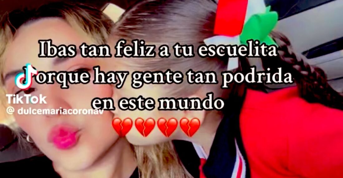 El sábado 14 de septiembre Dulce María Coronado publicó un video en TikTok que hizo el caso de su hija viral en redes sociales. En el clip, se ve una foto de su niña con el uniforme entrando a la escuela y luego se escucha un audio en el que Kim expresa lo que le pasó en la escuela entre lágrimas: «Me tocaron. Me tocaron».