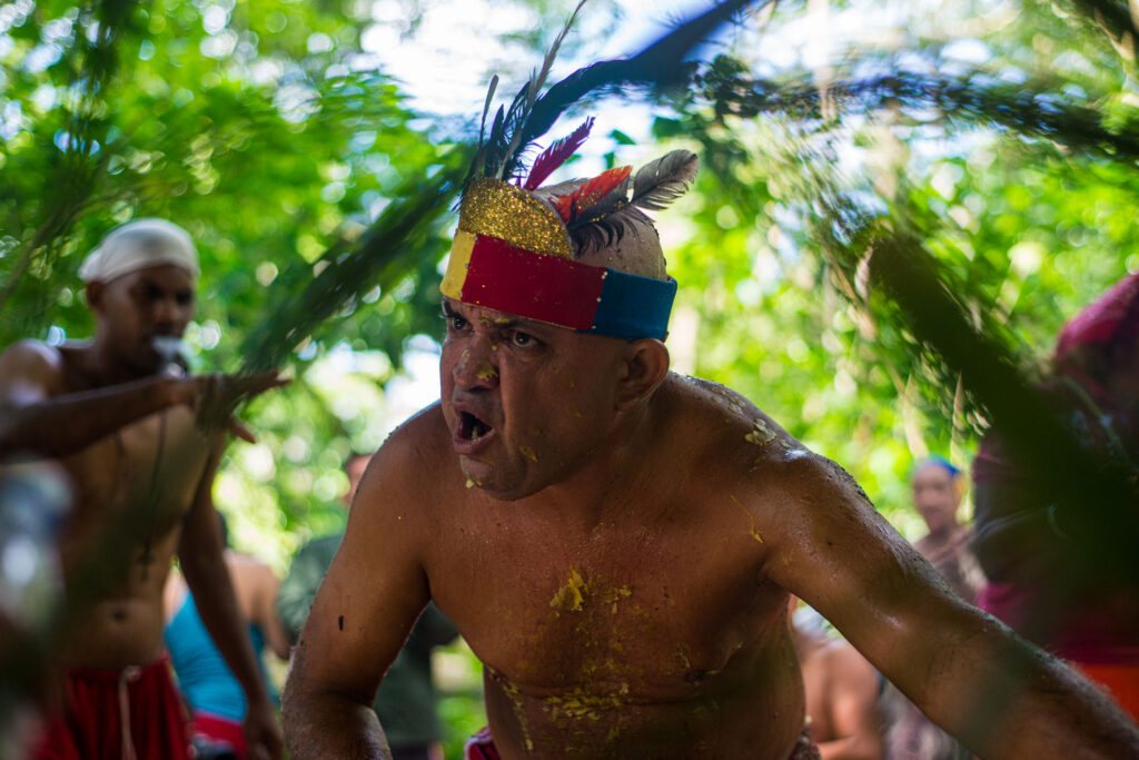 En mi visita del año 2022 fui por primera vez en calidad de fotógrafo y me propuse documentar la esencia de este ritual. La celebración del 12 de octubre en la montaña de Sorte, donde los devotos se convierten en vehículos de los espíritus indígenas, encapsula una experiencia espiritual vibrante.
