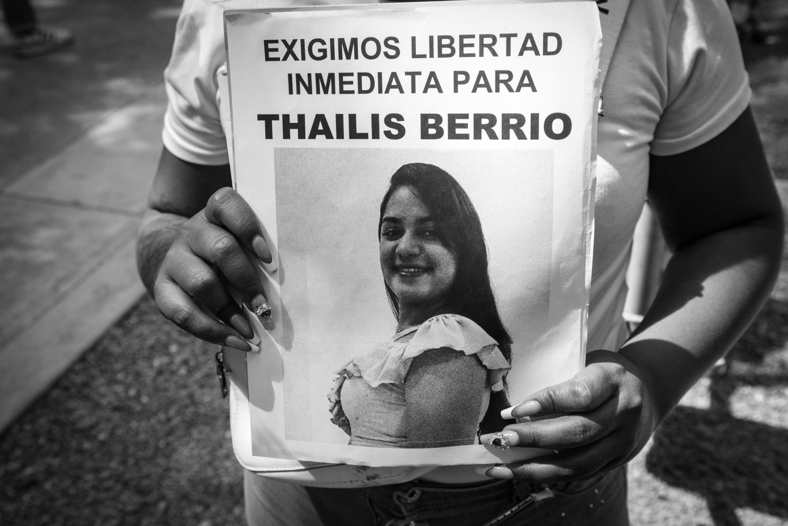 Thailis Berrios tiene 21 años de edad, vive en Los Valles de Tuy, en el estado Miranda, y fue detenida cuando regresaba a la casa de su novio el 30 de julio. La persona que habla por ella es Gardenia Pérez, su suegra, quien se ha encargado de denunciar su caso junto a su familia.