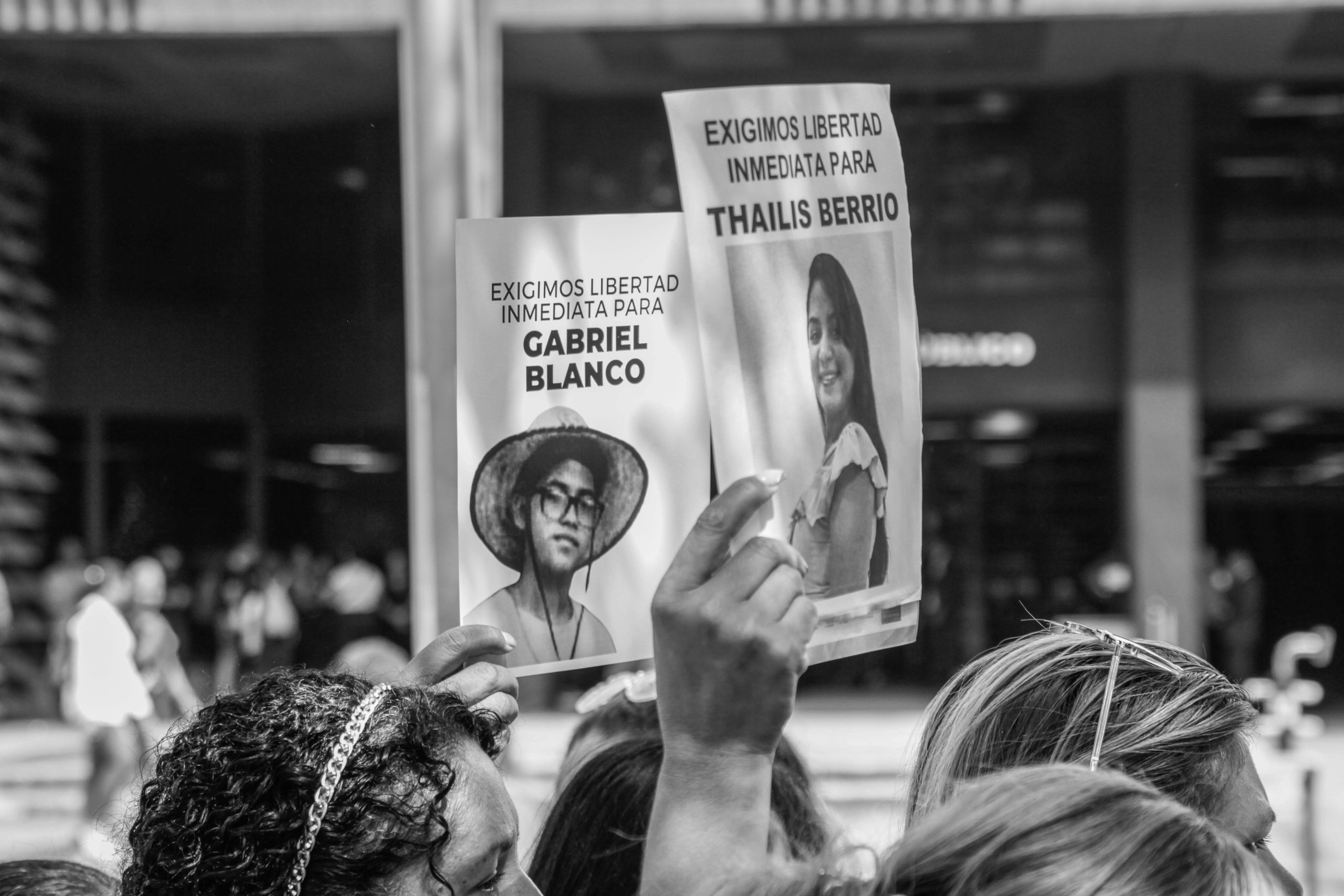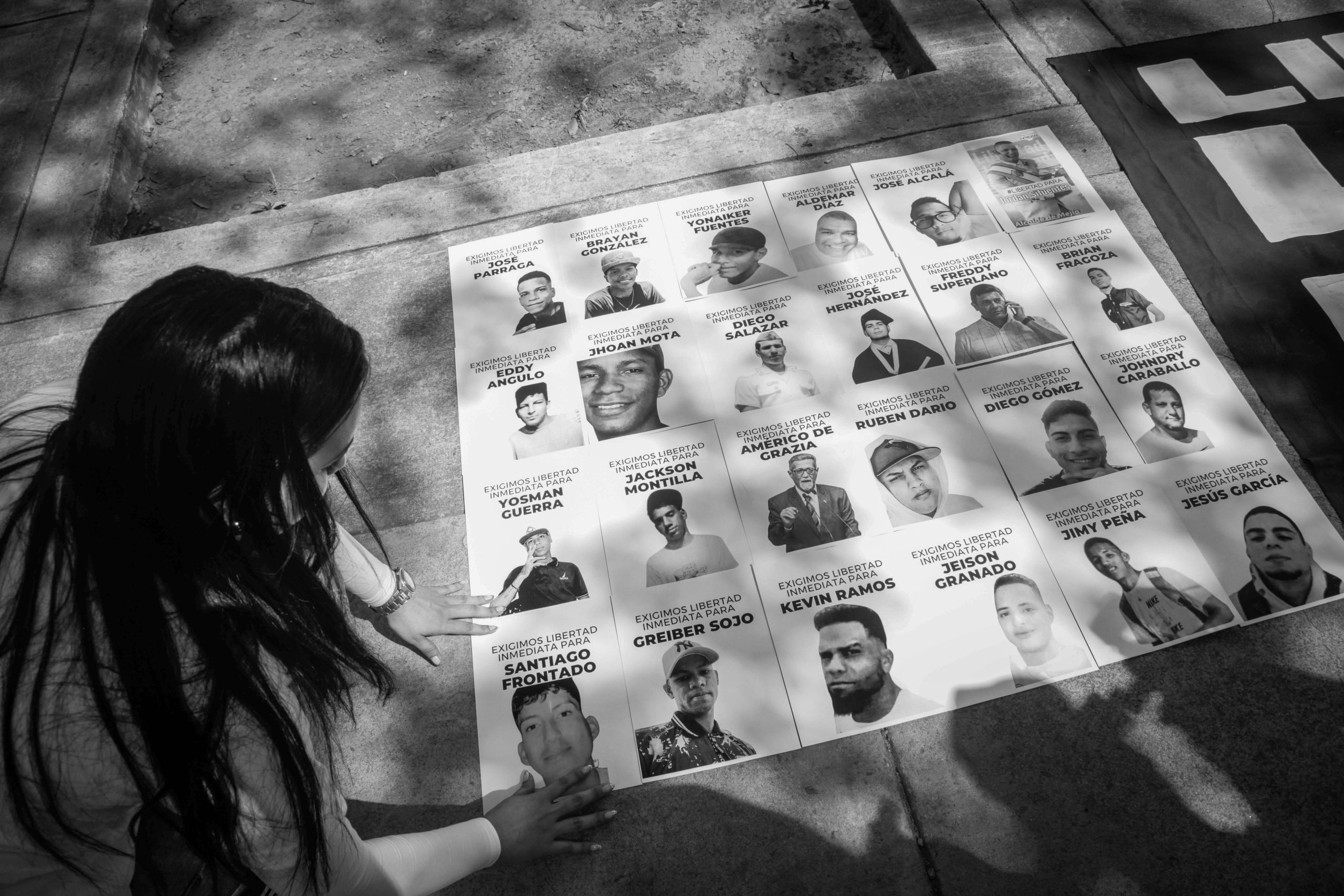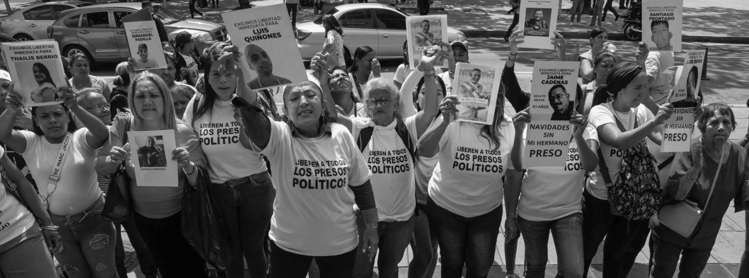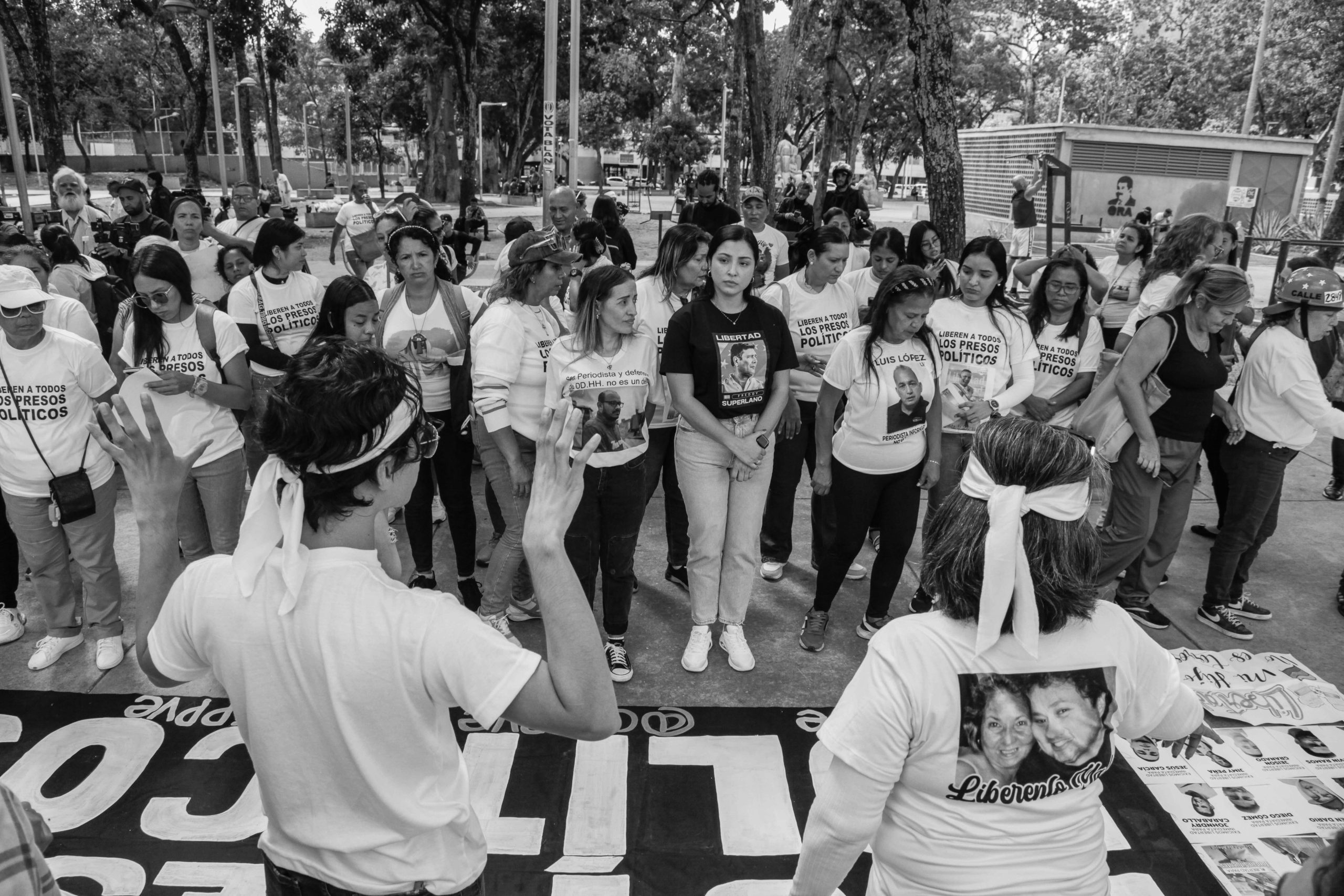 Los familiares y amigos de los presos políticos no se movilizan únicamente por los detenidos luego de las elecciones. Hablan por quienes murieron bajo custodia y también por aquellos que fueron encarcelados antes del 28 de julio. Foto: Daniel Hernández.