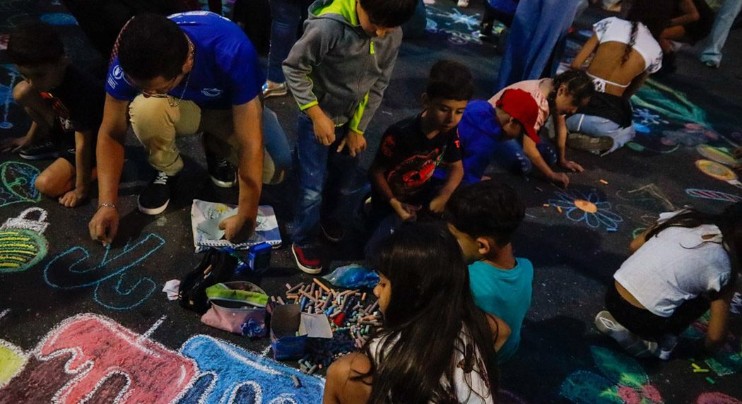 Cerca de Modo Caracas estarán familias con niños pintando las calles con tizas, en una manera de hacer cultura y dejar mensajes constructivos.