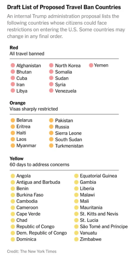 Puede ampliar la información visitando la nota de The New York Times: Draft List for New Travel Ban Proposes Trump Target 43 Countries