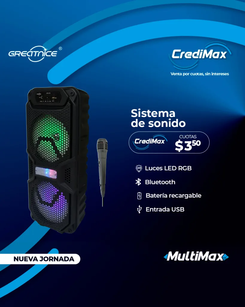 Todos los meses Multimax celebra jornadas especiales de CrediMax, un beneficio exclusivo para sus clientes afiliados donde pueden comprar en cuotas. Durante CrediMax selecciona tus artículos favoritos y a la hora de pagar cancela desde un 40% del valor total de tu compra, y el resto se distribuirá en 6 cuotas quincenales sin intereses añadidos.