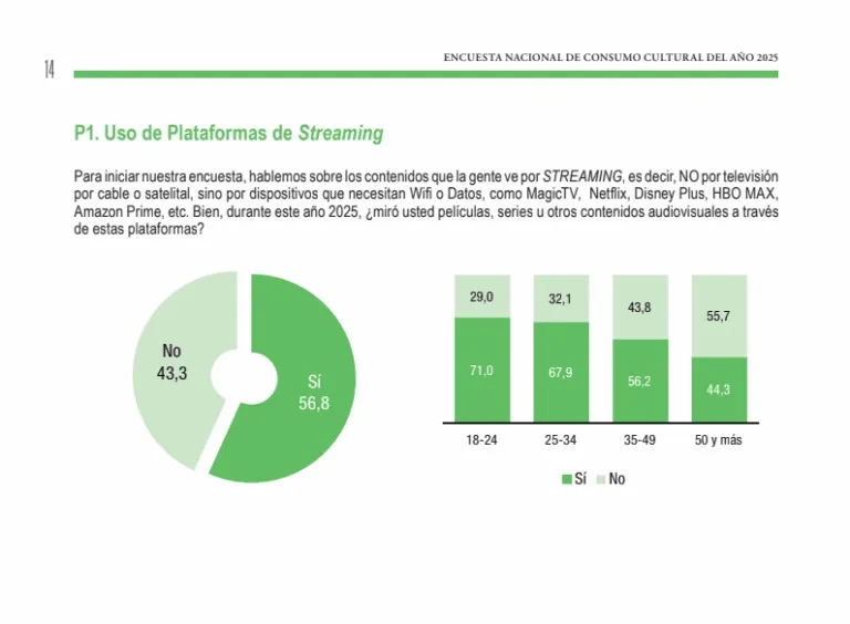 La encuesta también indica que más de la mitad de los entrevistados (56,8%) utilizó casi todos los días plataformas de streaming para disfrutar de películas, series u otros programas. Los televisores inteligentes (86,3%) y el celular (41,7%) fueron los dispositivos más comunes para acceder a los contenidos en línea.