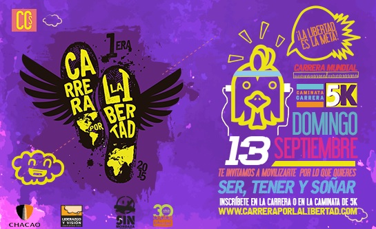 CEDICE Libertad, Un Mundo Sin Mordaza y Liderazgo y Visión, en alianza con la Fundación Cultura Chacao, Alcaldía de Chacao y diversos clubes de runners del país, invitan a todos los venezolanos la Carrera por la Libertad, a realizarse el domingo, 13 de septiembre.