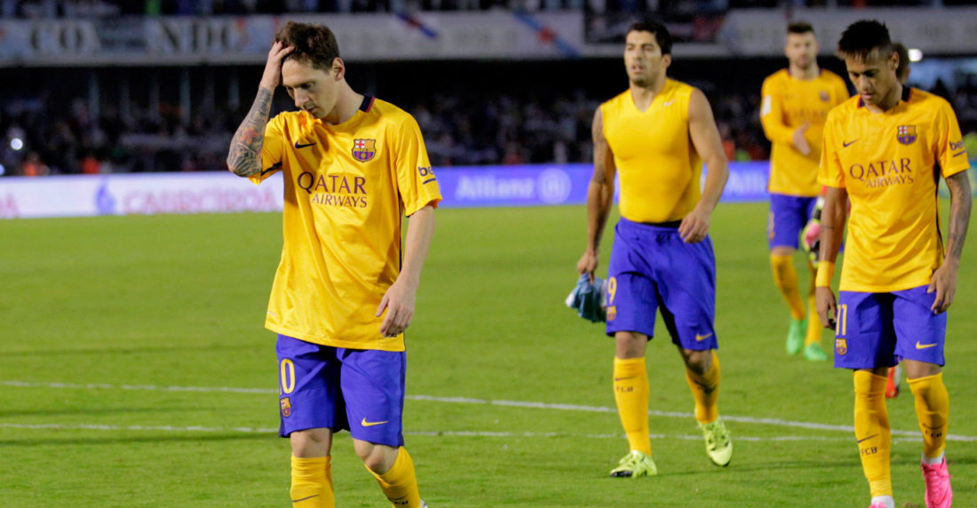 El Barcelona estaba desbordado, no encontraba la fórmula de frenar a un Celta que antes del descanso pudo lograr el tercero, con un disparo de su capitán Augusto Fernández, pero también vio peligrar su renta con un remate de Neymar que desvió con el cuerpo un defensor.