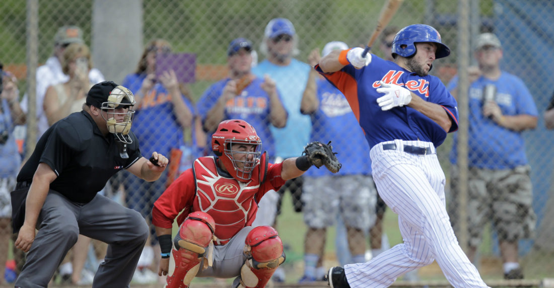 Tebow, de 29 años, impulsó así la primera carrera para su equipo, ante varios medios de prensa incluido la televisión, muy al tanto desde que decidió convertirse en profesional para tratar de llegar a las Grandes Ligas.