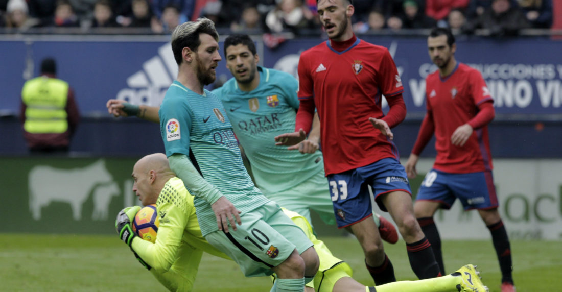 Barcelona golea 3-0 al Osasuna con brillo de Messi