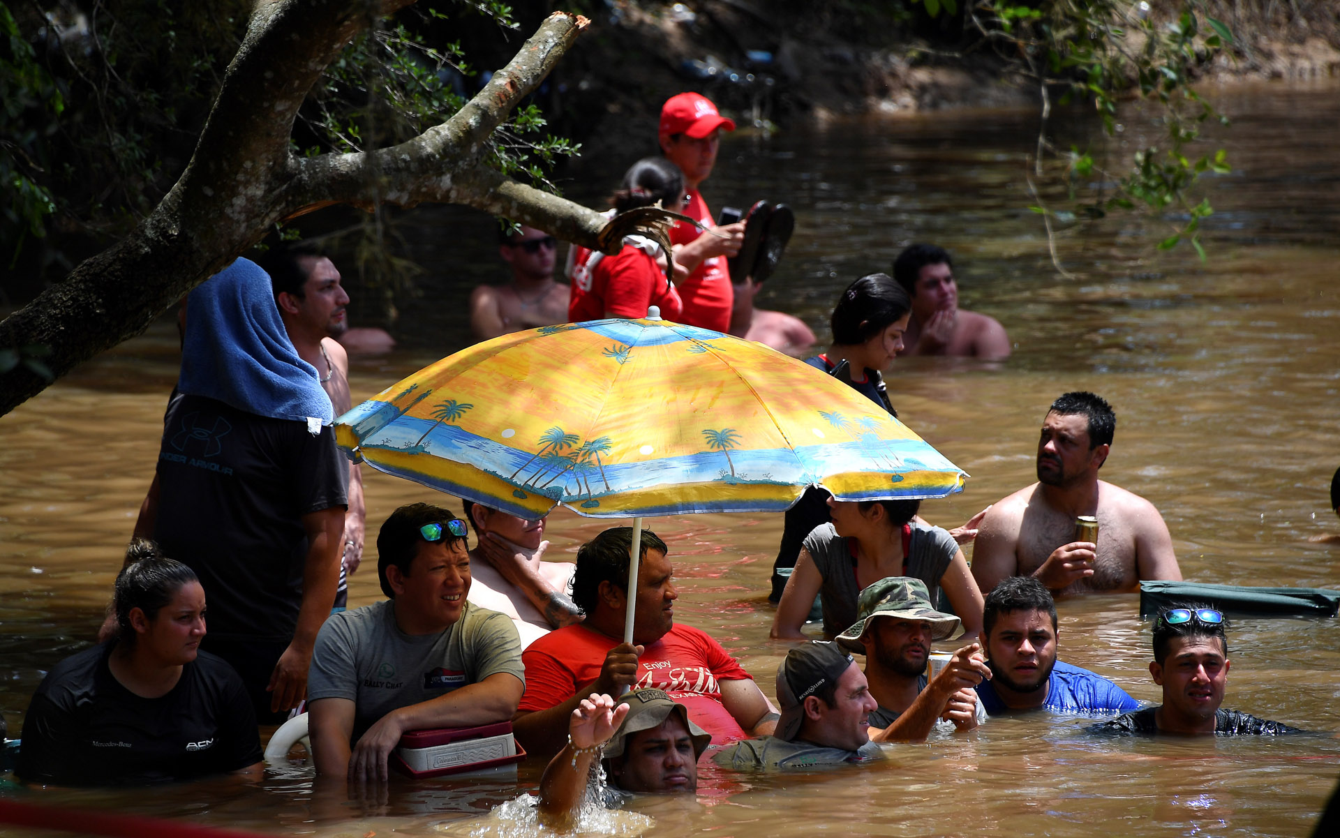 Una imagen tomada por un fotógrafo desde un auto en la mañana del viernes en la carretera entre Tupiza y Uyuni mostró a un camión de asistencia volcado, atrapado en un verdadero torrente.