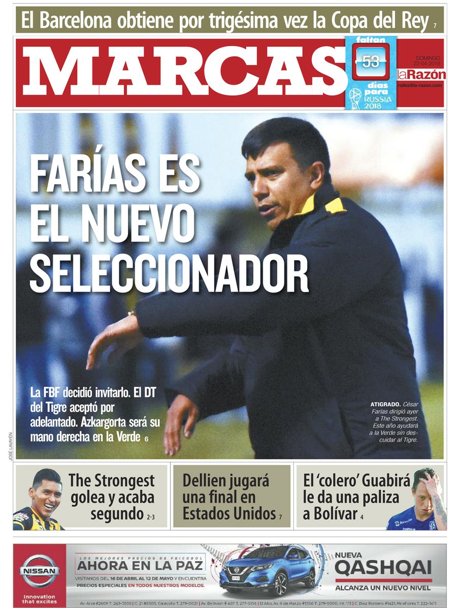 «Es un hecho: el venezolano César Farías será el próximo seleccionador nacional», indicó el diario boliviano Marcas en su portal web este domingo 22 de abril. En la nota explicaron que la Federación Bolivariana de Fútbol (FBF) invitó al técnico a dirigir los partidos amistosos de la «Verde» -contra Estados Unidos y Corea del Sur-, para más adelante formalizar su condición de titular en el cargo del combinado boliviano. «El DT dio ayer el sí por anticipado», agrega el medio.