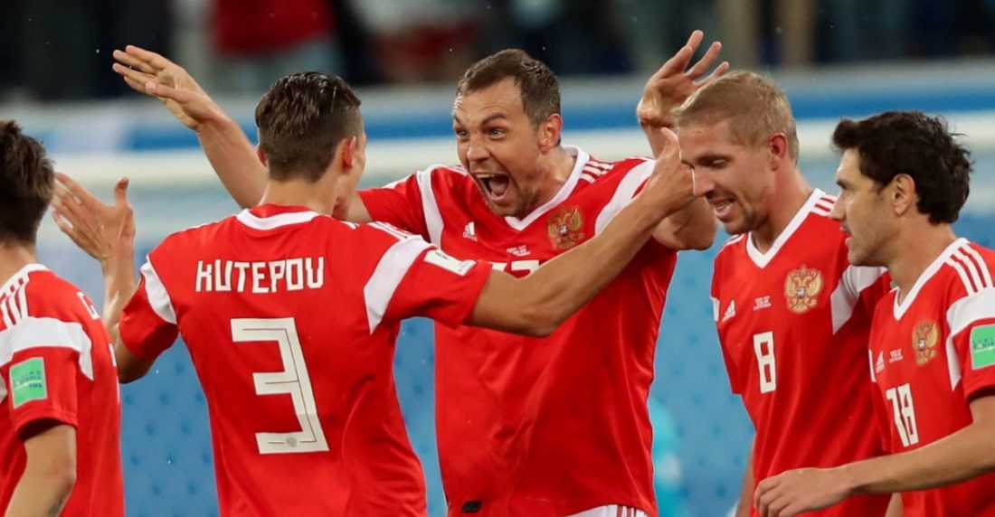 Líderes del Grupo A con seis puntos y balance de ocho goles a favor por solo uno en contra, los dirigidos por Stanislav Cherchesov arrollaron en San Petersburgo a un Egipto victimizado por un autogol de Ahmed Fathi a los 47 minutos y tantos de Denis Cheryshev y Artem Dzyuba a los 59 y 62, respectivamente.