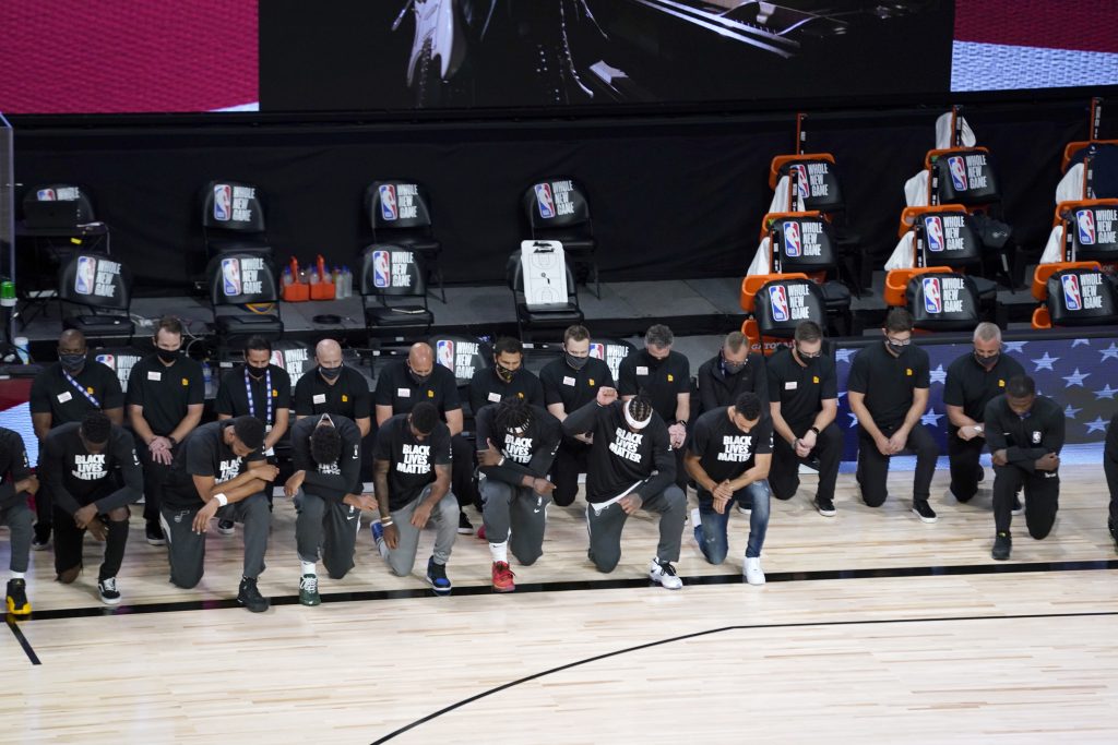 La liga y los jugadores se comprometieron a que este final de su temporada, a pesar de las condiciones de aislamiento en la «burbuja» de Disney World, contribuya a las actuales protestas contra el racismo desencadenadas por el crimen del afroamericano George Floyd a manos de un policía blanco dos meses atrás.