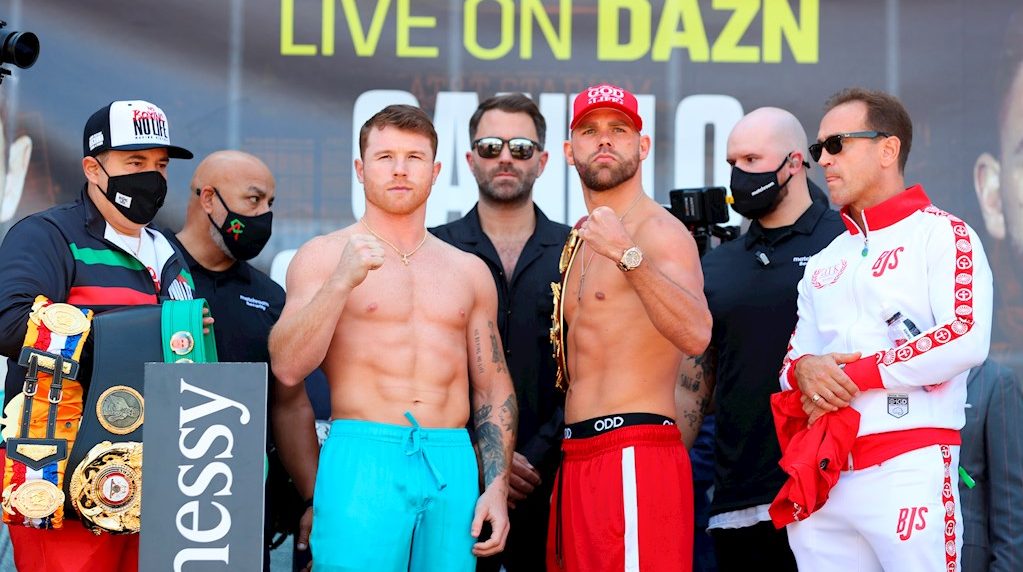‘Canelo’, con 55 victorias, 37 por la vía rápida, una derrota y dos empates, posee las fajas del Consejo Mundial de Boxeo (CMB) y la Asociación Mundial de Boxeo (AMB), a las cuales pretende sumar la de la Organización Mundial, en poder de Saunders, con 30 triunfos en 30 peleas, 14 de ellos por nocaut.