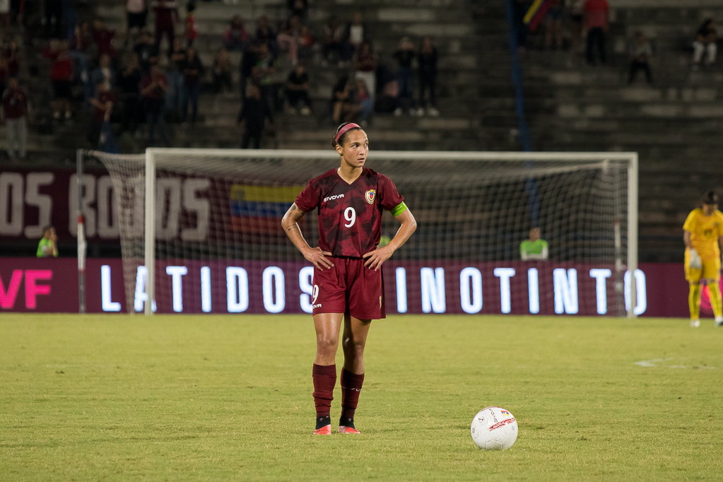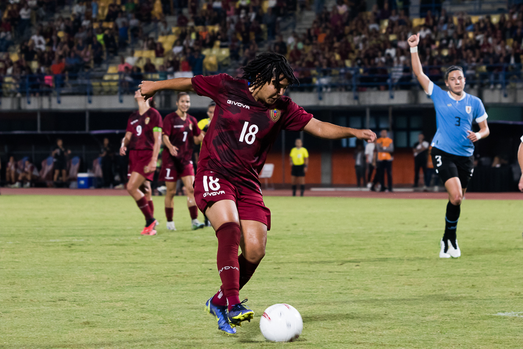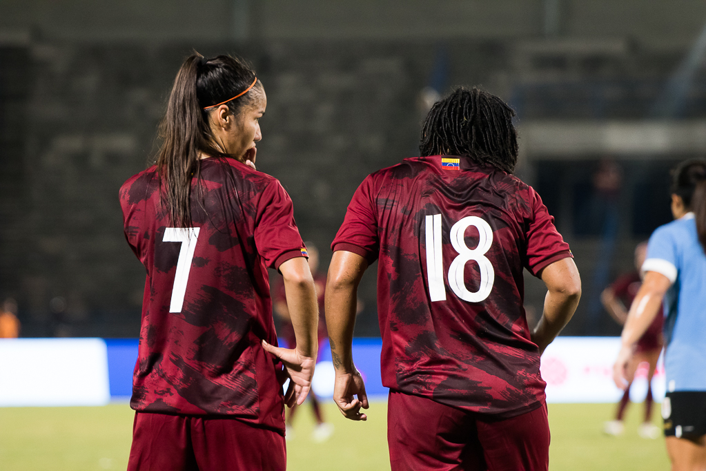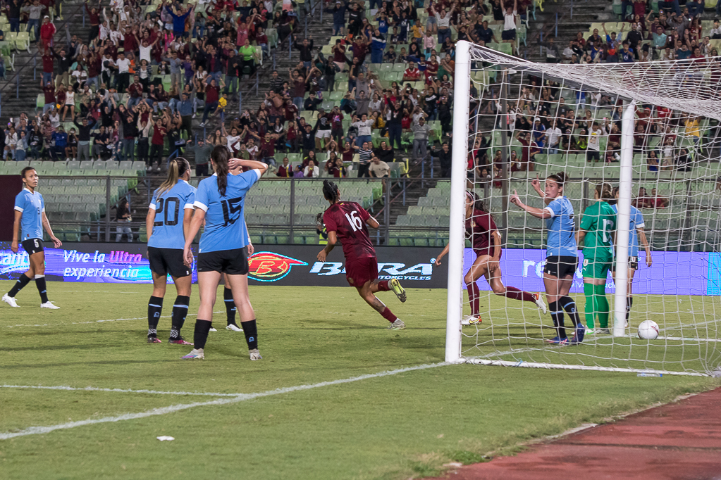 Deyna Castellanos en el campo. Foto: Betania Ibarra.Ysaura Viso durante el partido. Foto: Betania Ibarra.Paola Villamizar e Ysaura Viso. Foto: Betania Ibarra.Gabriela García justo después de anotar el gol contra Uruguay. Foto: Betania Ibarra.Celebración en equipo del gol. Foto: Betania Ibarra.