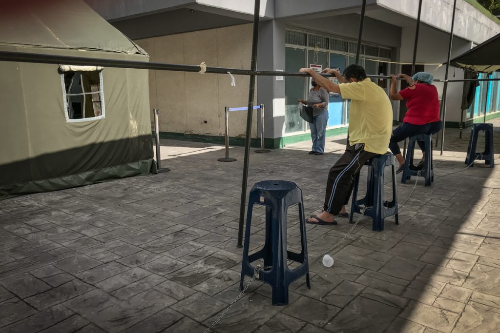 Enfermos a la espera de las pruebas rápidas por coronavirus, a las afueras del hospital Domingo Luciani, este viernes 24 de julio.(Foto: Daniel Hernández/El Estímulo).