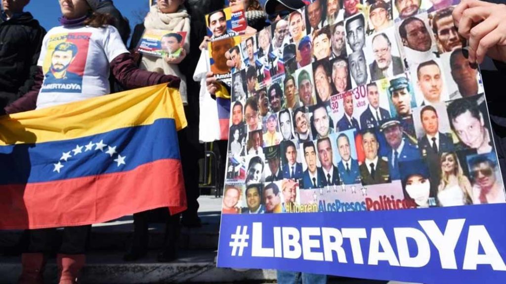 Manifestantes piden la liberación de presos políticos, durante una marcha en 2017, en Caracas