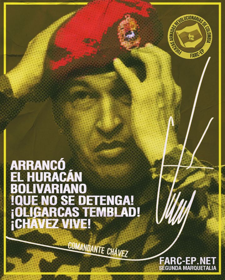 La adoración y el culto a la personalidad de Hugo Chávez están muy firmes en el pensamiento del movimiento Nueva Marquetalia de las FARC. Simplemente lo equiparan con Simón Bolívar.