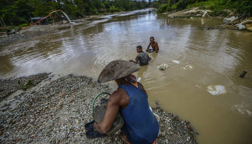 El destructivo mercurio, usado para amalgamar el oro, contamina el ambiente y el organismo de especies animales y vegetales, incluyendo seres humanos. Pero ese es solo uno de los males que provoca la minería depredadora en el Arco Minero, del sur de Venezuela. Foto archivo: JUAN BARRETO/AFP