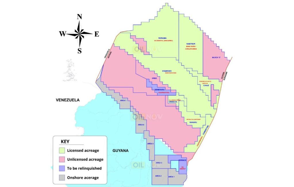 Nuevos bloques petroleros que Guyana subasta, inclusive en aguas por delimitar