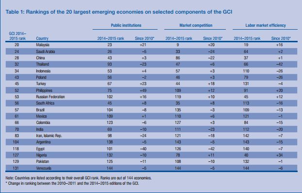 El Informe de Competitvidad Global de 2014-2015, difundido en la madrugada de este miércoles en Europa por el WEF (siglas en inglés) revela un serio deterioro en casi todos los indicadores, grandes contradicciones y condiciones peores a la de algunos de los más empobrecidos países africanos y de América.
