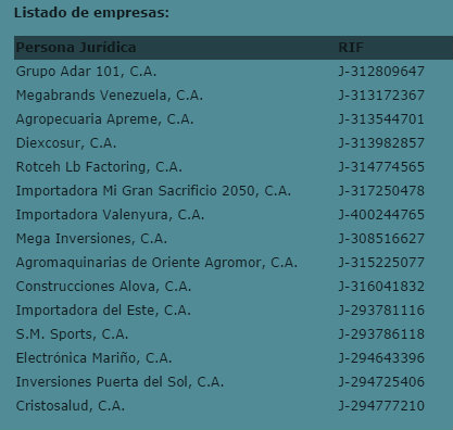 Las empresas señaladas dejaron de asistir al operativo de verificación de divisas que empezó en julio pasado para un total de 1.059 compañías. A los titulares de las compañías se les revocó su Registro de Usuarios del Sistema de Administración de Divisas (Rusad) y no se les permitirá participar en el Sistema Complementario de Adquisición de Divisas (Sicad II). Hasta comienzos de septiembre habían sido sancionadas otras 30 empresas por el mismo motivo.