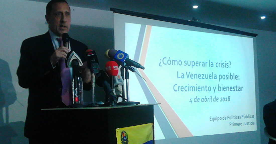 El diputado de la Asamblea Nacional, José Guerra, presentó este miércoles una propuesta económica del partido Primero Justicia, en la cual se establece la eliminación de fondos parafiscales y del control de cambio. Prevén financiamiento externo por $10.000 millones y la entrega de subsidios a la población de menores ingresos vía transferencias directas. “Hay que eliminar el Estado empresario”, dijo.]]>