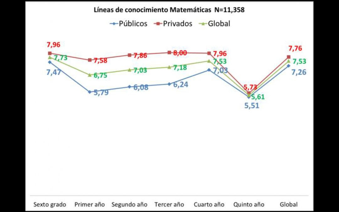 Precisó que la nota global obtenida, en el ámbito numérico, por los estudiantes de educación media fue de 7,53 puntos sobre 20, es decir, en promedio los alumnos de bachillerato no poseen las competencias mínimas en la materia.