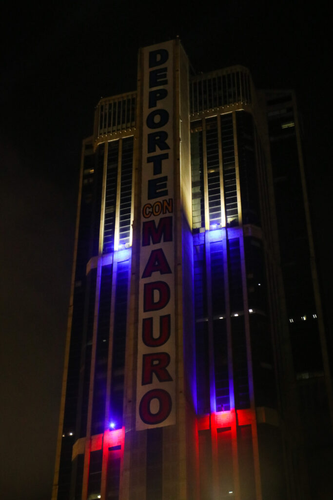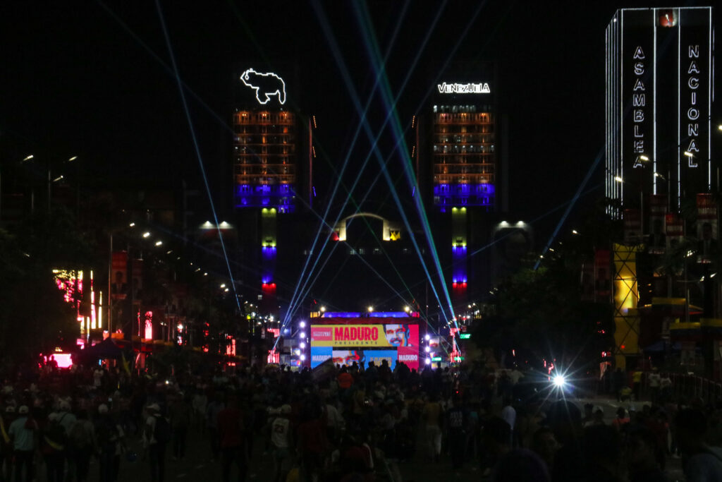 Las luces estroboscópicas alumbraban toda la avenida cuál concierto y se veían desde la fuente de Plaza Venezuela. A lo lejos también se captaba una multitud gritando y disfrutando de los invitados musicales que el partido PSUV llevó para el cierre de campaña.