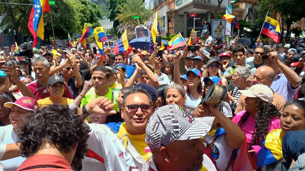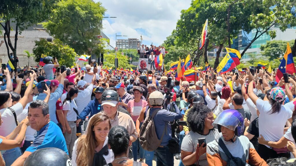 Millares de personas se reunieron en la avenida principal de Las Mercedes, este sábado 3 de agosto, ante el llamado de la líder opositora María Corina Machado, para protestar luego de las elecciones presidenciales del domingo 28 de julio, a las que consideran fraudulentas.