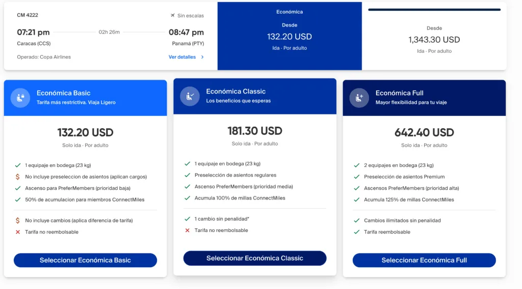 Panamá – Caracas: salida a las 9:03 am y llegada a las 12:22 pm.