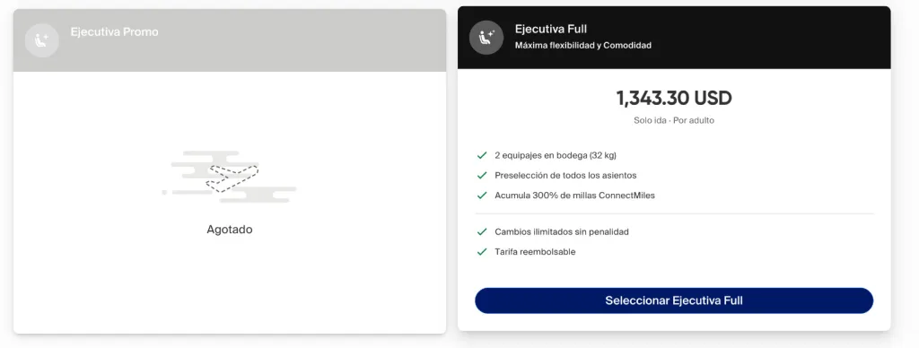 En clase ejecutiva, el boleto cuesta 1.343,30 dólares.