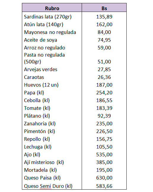 Tras el recorrido, el equipo de Elestimulo.com promedió los precios obtenidos en cada uno de los establecimientos. Los precios varían de acuerdo del tipo de establecimiento: mercados populares, establecimientos de la red de distribución del gobierno y supermercados privados. Y también de un día a otro, en algunos casos.